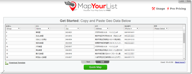「MapYourList」は、クリップボードにコピーしたデータを、枠内でCtrl+Vするだけ。