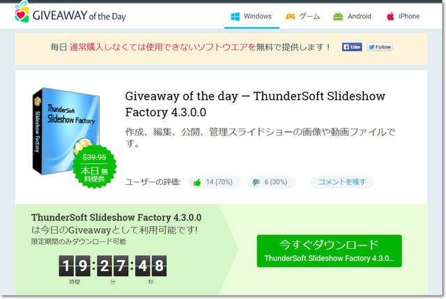 「Giveaway of the Day」のページで、「今すぐダウンロード」。