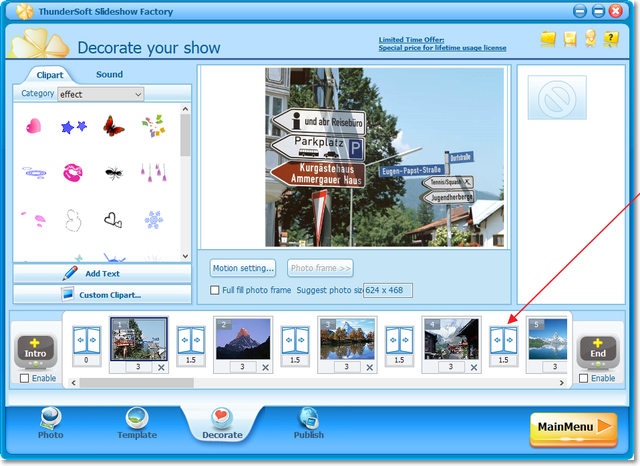 いろいろな形式で、いろいろな飾りもついたスライド動画を作れるソフト。