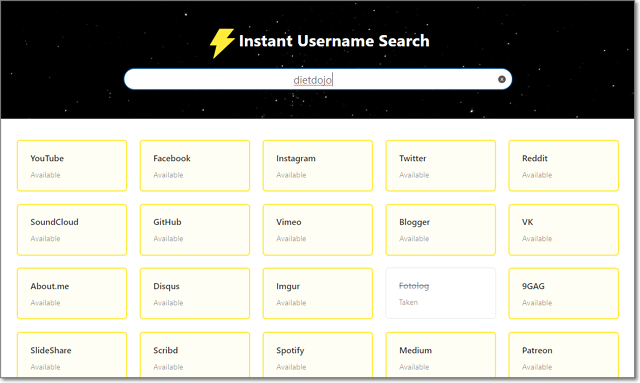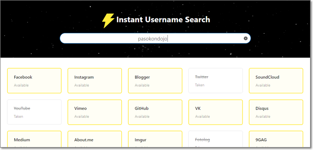 いろんなWebサービスで、特定のアカウントが作れるかを確認できるサイト。