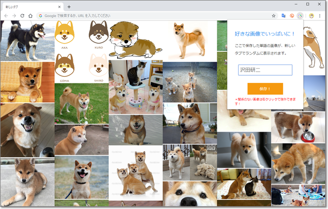 新しいタブを開くと、キーワードで検索された画像で埋め尽くされるChrome拡張機能。
