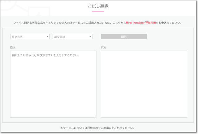 「お試し翻訳」は、2,000字まで。