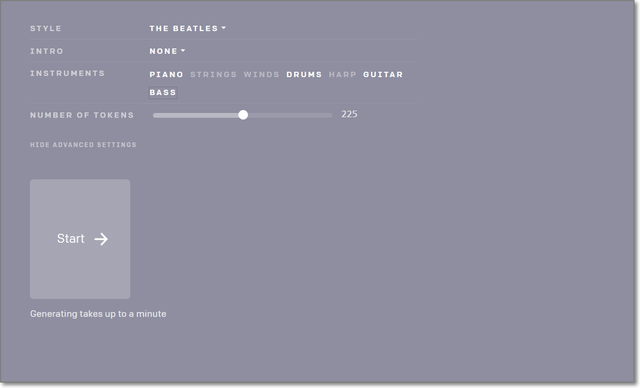 スタイルなどを指定して、AIに自動作曲させるサービス。