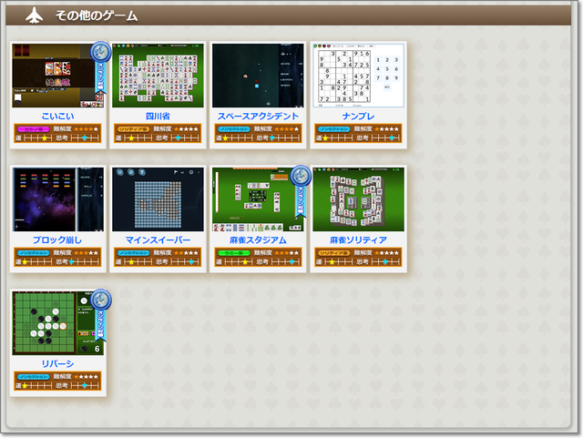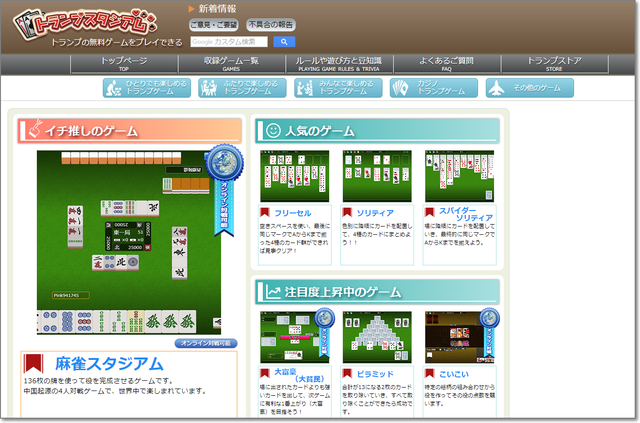 トランプゲームを中心とした、ブラウザで遊べるゲーム集。