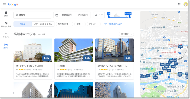 Airbnbと同じように、地図・価格帯などで絞り込みできる設計。