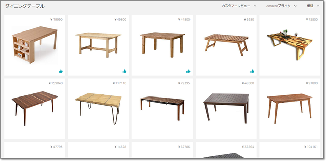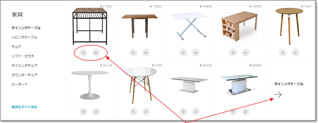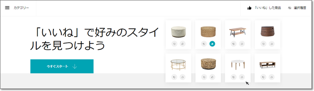「ダイニングテーブル」など項目を選んで、「いいね」「よくないね」を指定していきます。