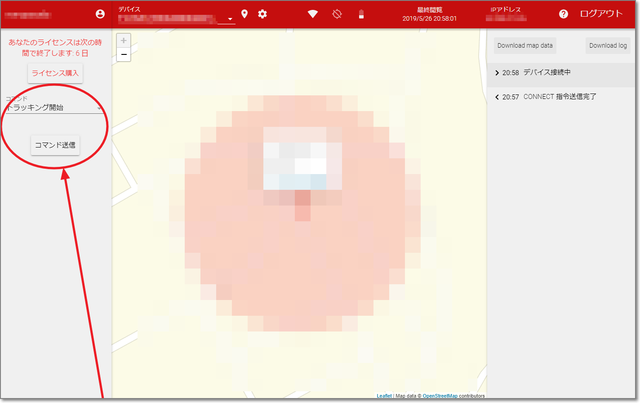 「コマンド」を選んで「コマンド送信」すると、スマホで実行されます。
