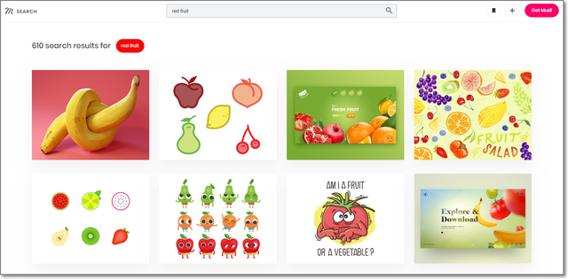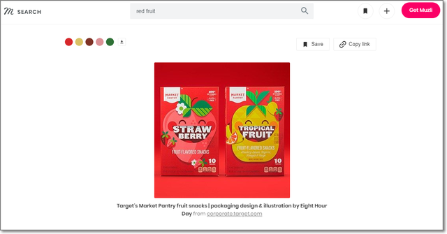たとえば「red fruit」で検索すると、さまざまなデザイン・アイデアが。