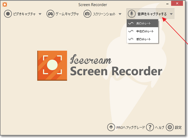 「音声をキャプチャする」で、音質を選びます。