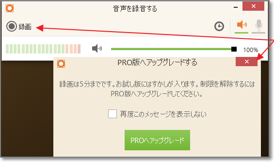 「5分制限を解除したいときは、有料版を購入」の案内が出ます。