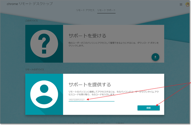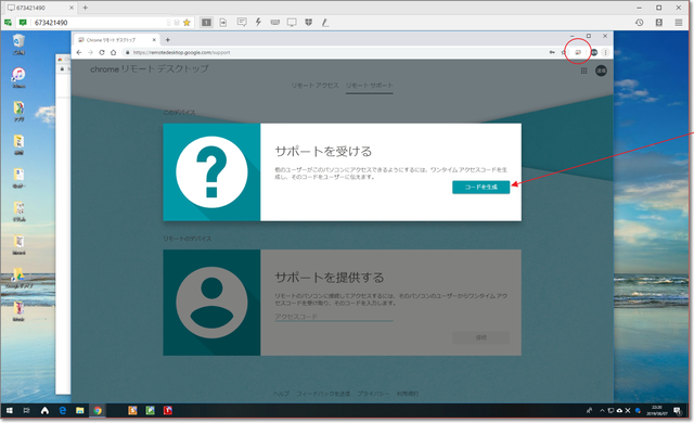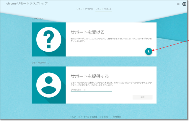 これをクリックすれば、「Chromeリモートデスクトップ」ページが開きます。