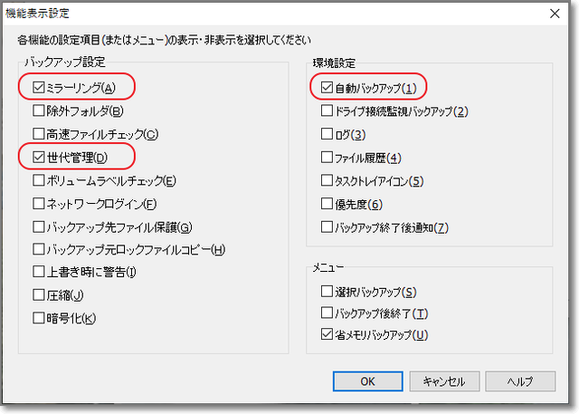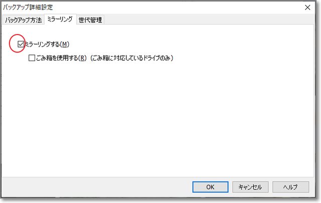 「ミラーリング」「自動バックアップ」にチェック。