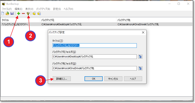 1.「+」で、バックアップを設定します。