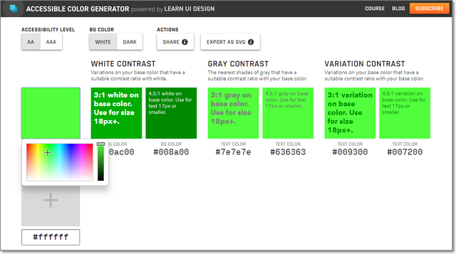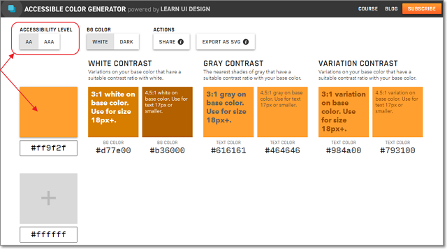 左上「Accessibility Level」は、読みやすさレベル通常(AA)と、高い(AAA)を選べます。