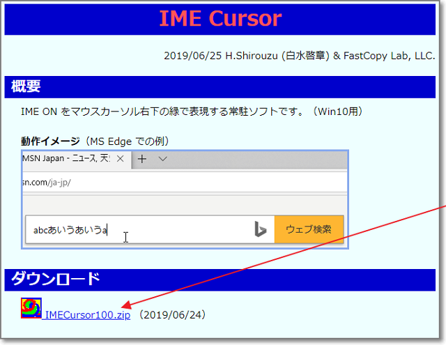 カーソル位置に、IMEの入力モードを表示してくれるソフト。