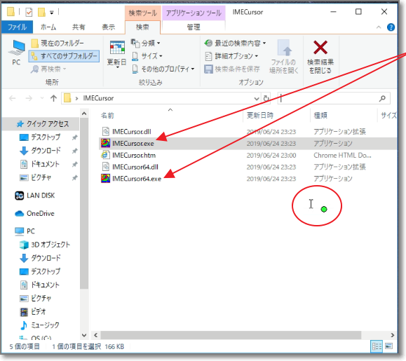 そこから「IMECursor.exe」または「IMECursor64.exe」を実行します。