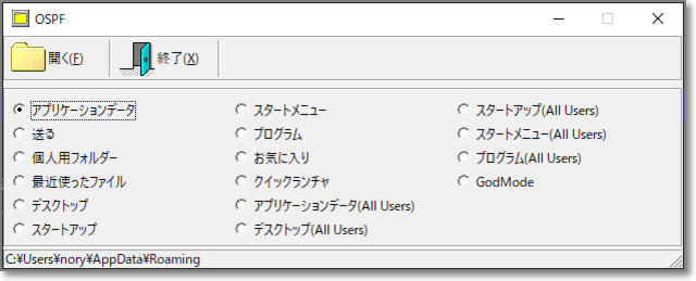 Windowsの特殊フォルダを、すばやく開いてくれるソフト。