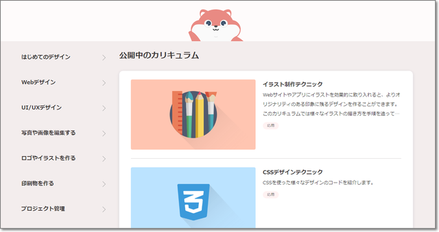 「制作中」のカリキュラムが多く、これから充実していくようです。