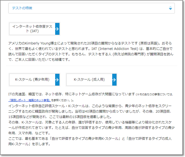 「アルコール依存テスト」の下に、ネット依存テストがあります。