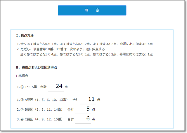 合計27問に答え、「判定結果を表示します。」をクリック。