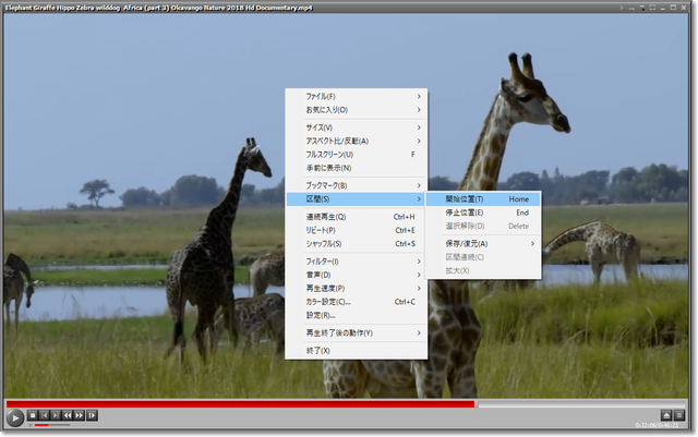 再生中または一時停止中に、画面を右クリック→「区間」で、