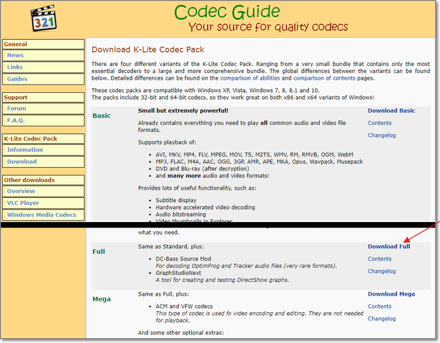 ここでは、「K-Lite Codec Pack」をインストールしてみます。