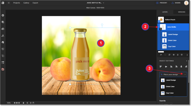3.「Place your design」をクリックして、変更したいパーツを選択。
