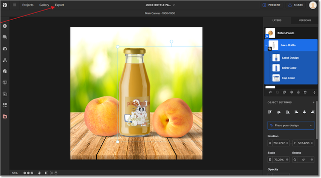 完成したら、「Export」でjpgまたはpng形式でダウンロード。