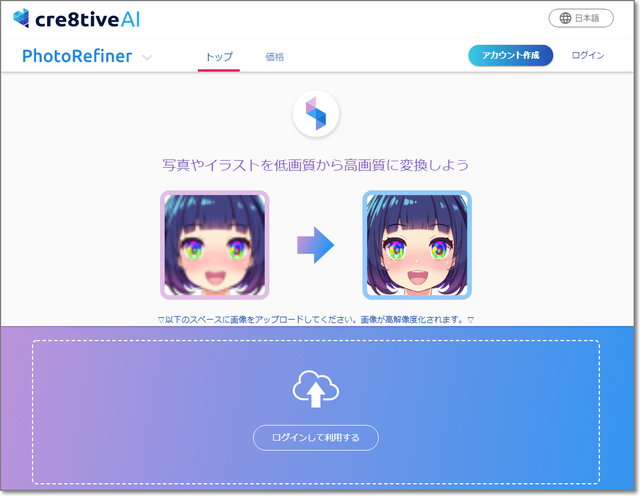 低画質の画像ファイルを、くっきりキレイにしてくれるWebサービス。