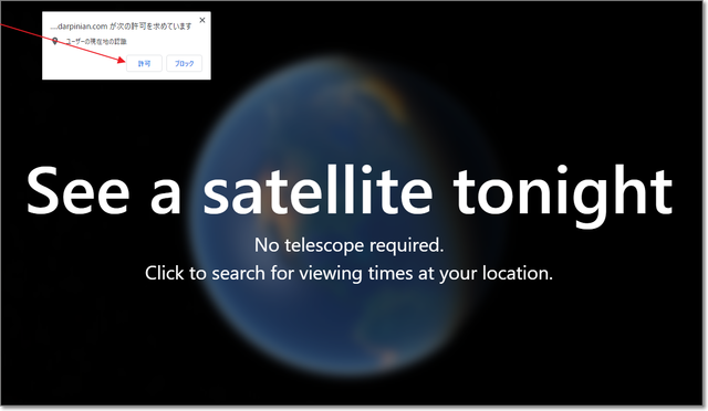 画面内をクリックすると、「ユーザーの現在地情報」について、許可を求めてきます。