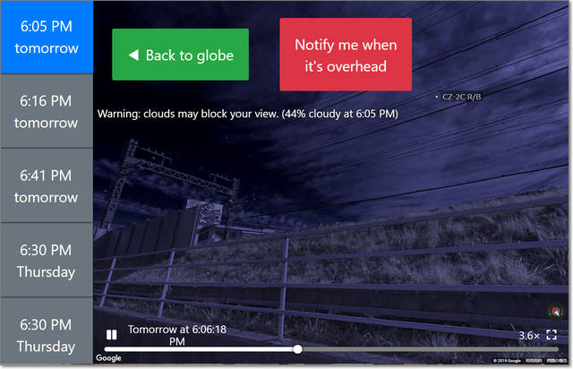 自分のいるところから、いつ、どんな感じで、どの人工衛星が見えるかを教えてくれます。