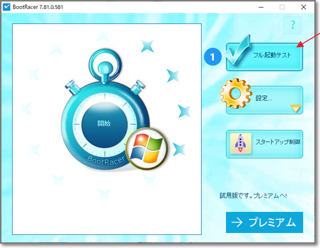 「フル起動テスト」をクリック、自動的に再起動に入ります。