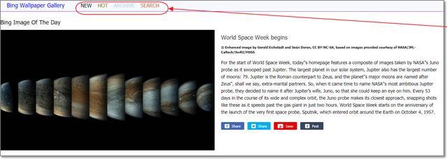 「Bing Wallpaper Gallery」の上部メニューで・・・