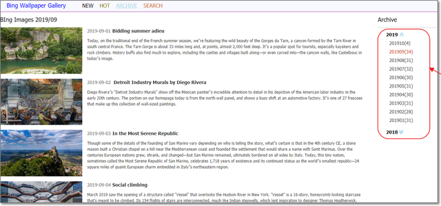Bingの日替わり画像を、検索して入手できるサイト。