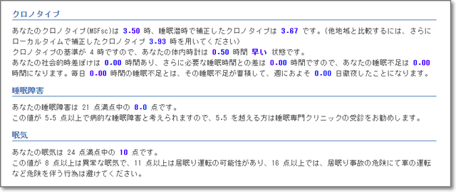 ボクは、「やや朝型、やや睡眠障害あり」との結果が。
