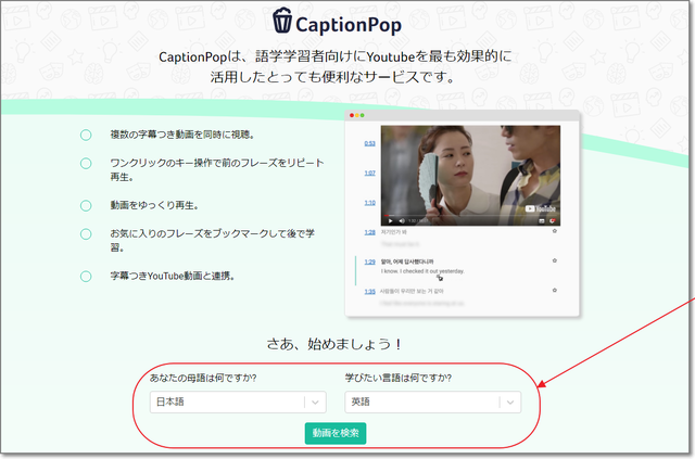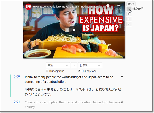 日本語と英語、2つの字幕が、動画に合わせて流れていきます。