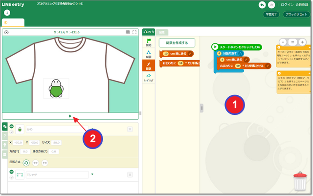 2.スタートボタンをクリックすると、組み立てたブロックに従って動作します。