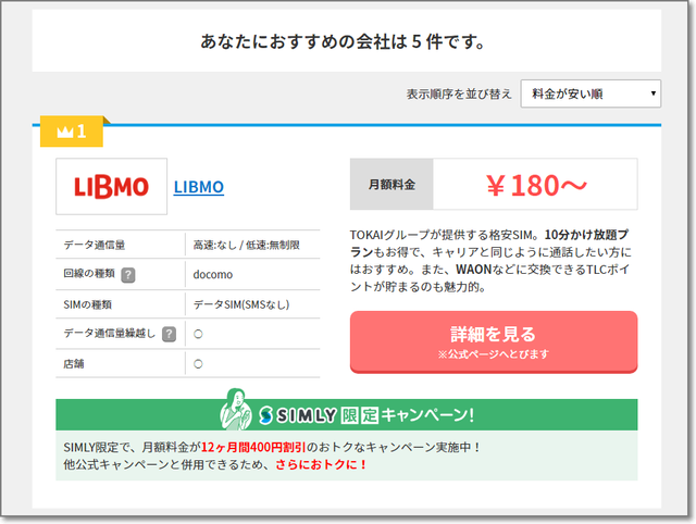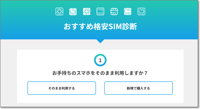 「カンタン!格安SIM診断」ボタンをクリックして、質問に答えていき・・・