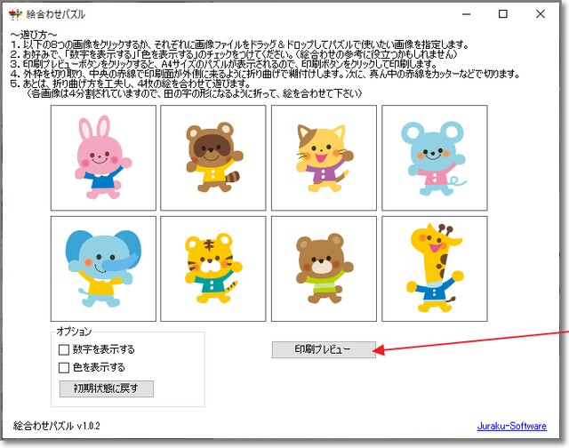 →解凍してできる「絵合わせパズル.exe」を実行するだけ。