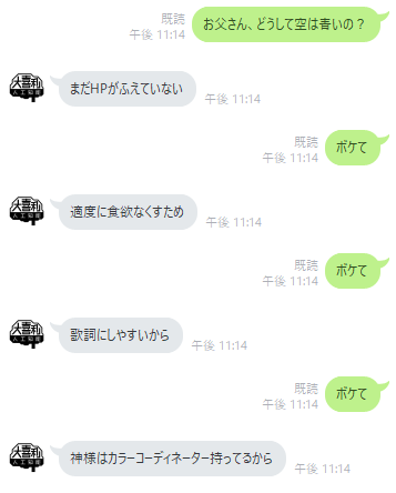 大喜利をするAI パソコン X Facebook LINE コピー 2019.11.24 人工知能が、お題を出したり、ボケたりします。 「大喜利人工知能」 「株式会社わたしは」という、社名もサイト・トップページもツッコミ待ちのような会社の作品。 こちらのQRコードで、LINEの友だち追加をします。 使い方の説明は、こちら。 トーク画面で、「お題」というとお題を出し、「ボケて」というとボケます。 かなり優秀。 こちらがお題を出すと、ボケます。 続けて「ボケて」というと、別のボケを出してきます。 画像を送ると、ボケます。 test ad