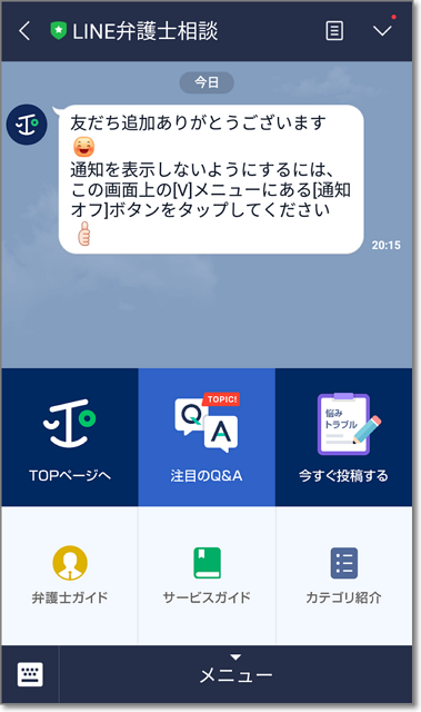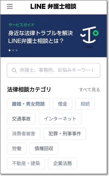 LINEで「弁護士相談」で検索すると、すぐに見つかります。