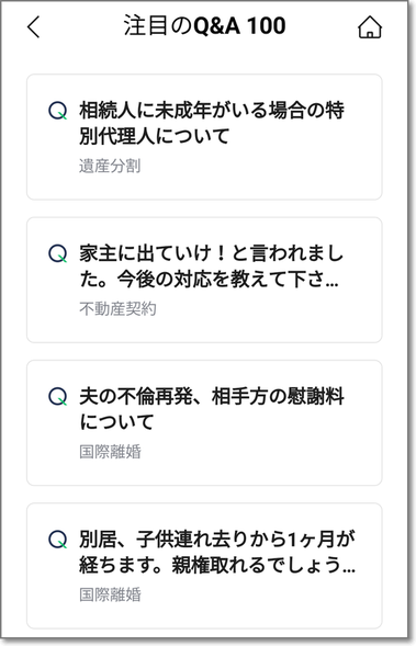 他の人の相談内容を見たいときは、メニュー→「注目のQ&A」。