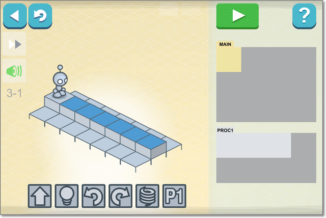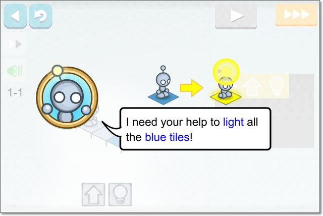 ロボットを動かして、青タイルのところをすべて点灯させればクリア。