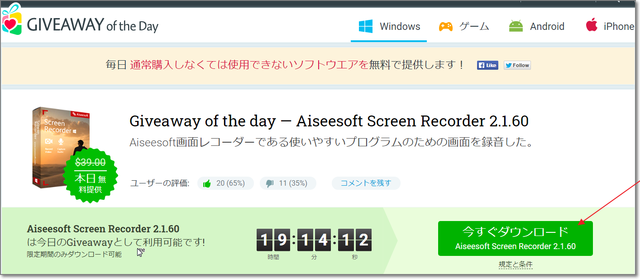 有料の画面録画&録音ソフト「Aiseesoft Screen Recorder」が、無料で入手できます。