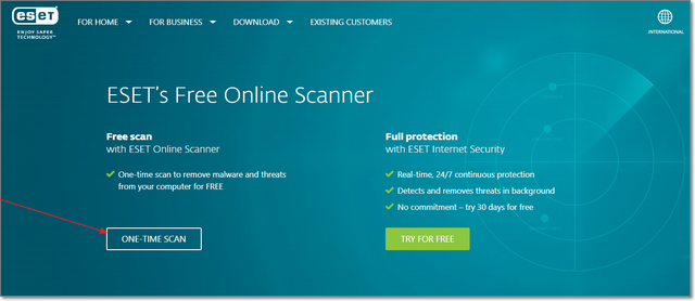 「ONE-TIME SCAN」をクリック→入手したファイルを実行します。