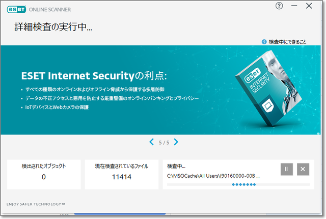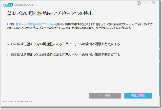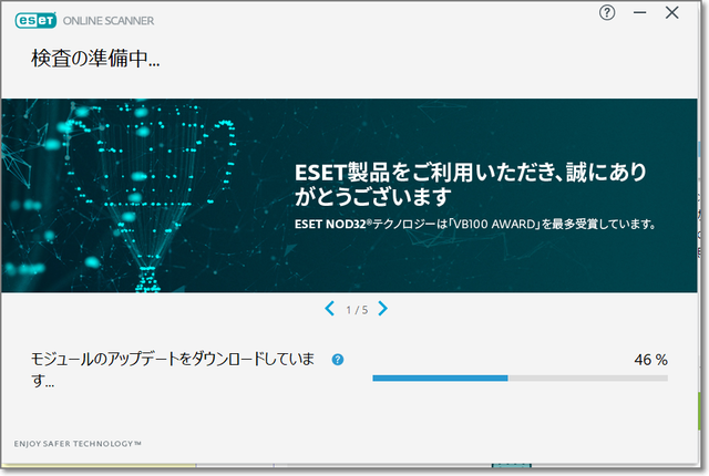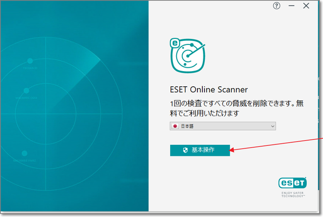 評判のいい(ように感じる)ESETのオンラインスキャナーを使います。