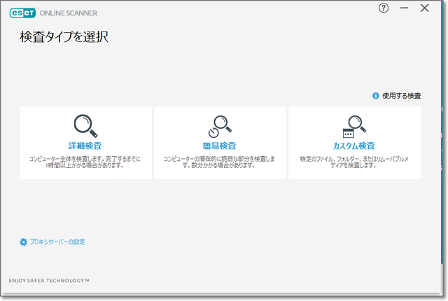 「詳細検査」「簡易検査」「(場所を指定する)カスタム検査」が、選べます。