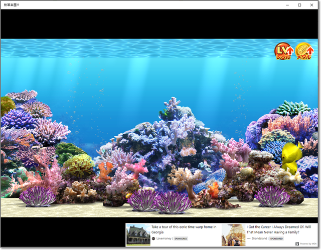 全画面表示にすると、広告が水槽内に入り込んじゃうので、