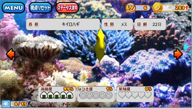 魚をクリックして、「ステータス表示」すると、詳細情報が出ます。