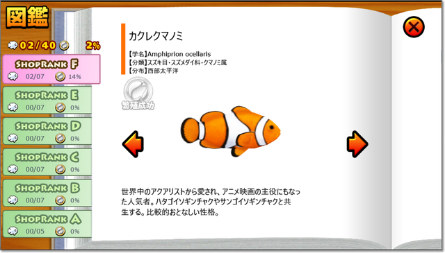 図鑑で、いまいる魚の詳細を調べられます。